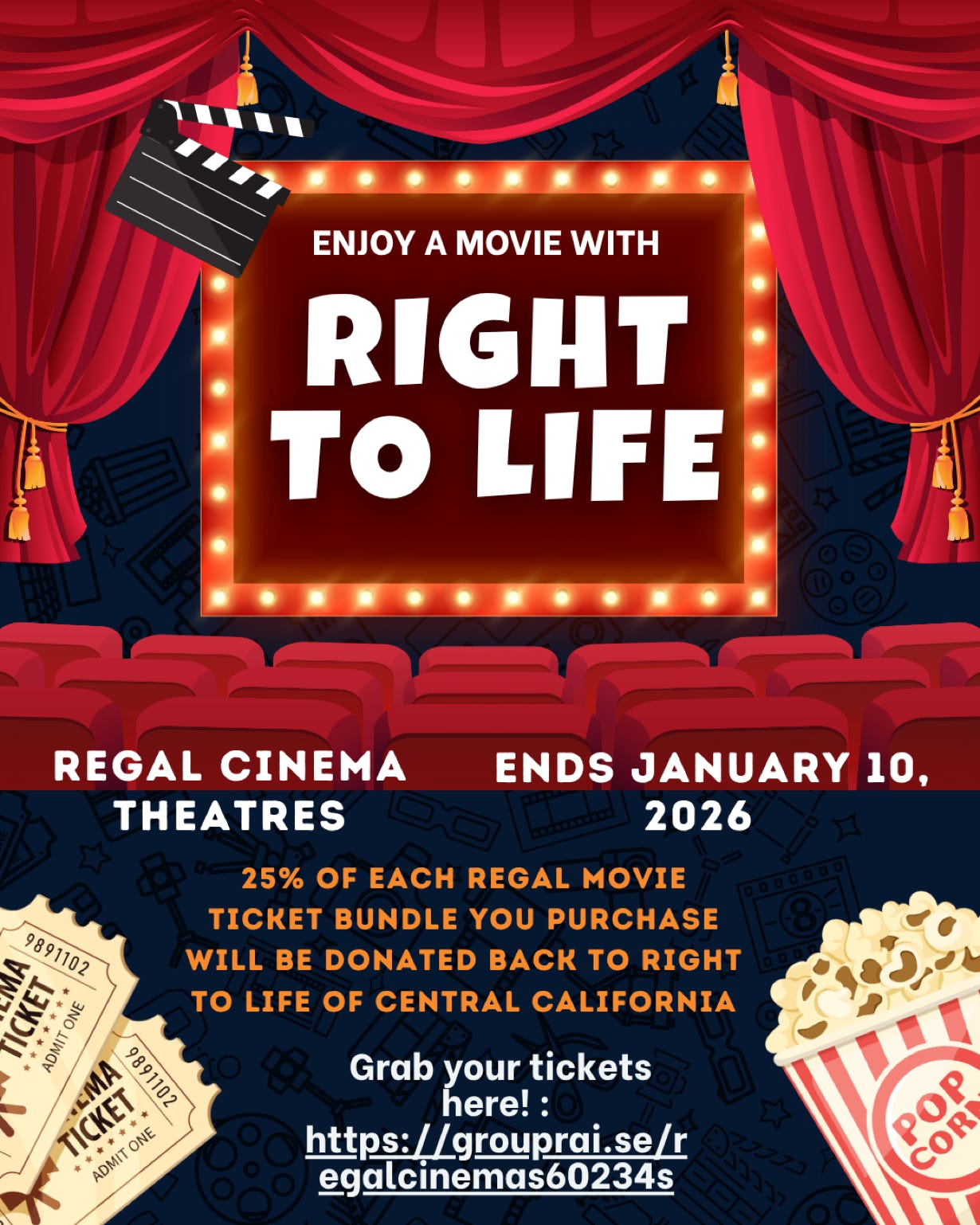 We have partnered with Group Raise to offer Regal Cinema movie tickets! Purchase any amount of tickets for any movie and 25% of the purchase will go toward supporting Right to Life!